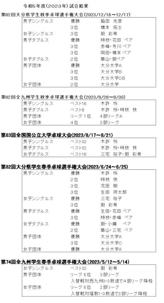 令和5年度 試合結果